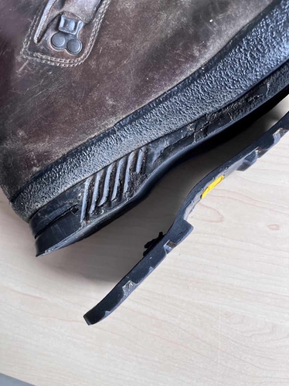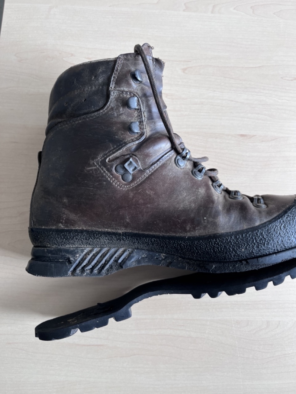 Einige meiner Gäste können ein Lied davon singen. Man freut sich auf die bevorstehende Wanderung und holt die alten Wanderschuhe aus dem Schrank. Man hat die Schuhe schon seit 10 Jahren, die Passform ist immer noch super und sie sehen noch aus wie neu. Leider kommt man nur 1-2 Mal im Jahr dazu die Schuhe in die Berge auszuführen. Aber dieses Jahr geht es auf die lange geplante Alpenüberquerung. Doch dann passiert es, schon am zweiten Tag löst sich plötzlich die Sohle. Zum Glück hat Lukas immer genug Tape im Rucksack dabei und in wenigen Minuten sind die Schuhe provisorisch geflickt und es kann weiter gehen ;o) Im ersten Moment denkt man daran, sich neue Schuhe zu kaufen, sobald man im Tal ist. Aber solange der Schuh ansich noch gut in Schuss ist, lässt sich er sich, je nach Modell, relativ einfach mit einer neuen Sohle ausstatten. HANWAG bietet bei ihren Schuhen einen Wiederbesohlungs-Service an und so können gute Wanderschuhe wirklich lange eine große Freude in den Bergen bereiten. Wichtig ist jedoch dabei, dass man die Schuhe nicht zu lange unbenützt herum stehen lässt. Der Kleber der die Sohle am Schuh befestigt und die Sohle selbst, werden mit der Zeit spröde, wenn sie nicht bewegt werden und dann kann es eben passieren, dass der Schuh noch wie neu aussieht, die Sohle jedoch bei der nächsten Wanderung unerwartet abfällt. Daher mein Tipp - immer früh genug vor einer großen Wanderung das Material testen, sodass noch genügen Zeit für eine Wiederbesohlung (bei HANWAG ca. 2-4 Wochen) bleibt :)